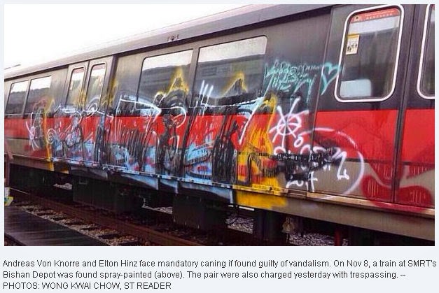 If found guilty, both face the possibility of going to jail or being fined, but vandalism carries mandatory caning of three to eight strokes.