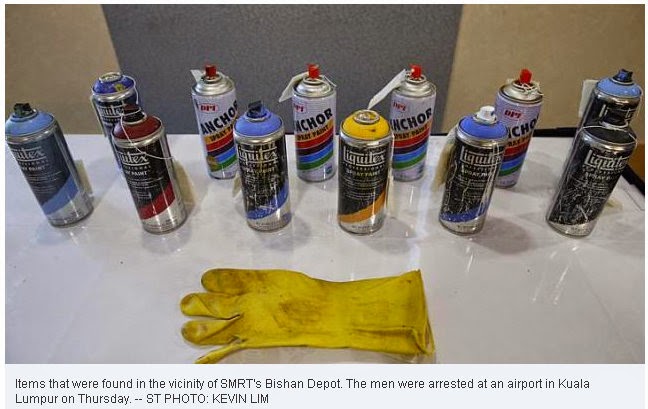 Meanwhile, twelve spray- paint cans and a single yellow glove were found in the vicinity of SMRT's Bishan Depot.